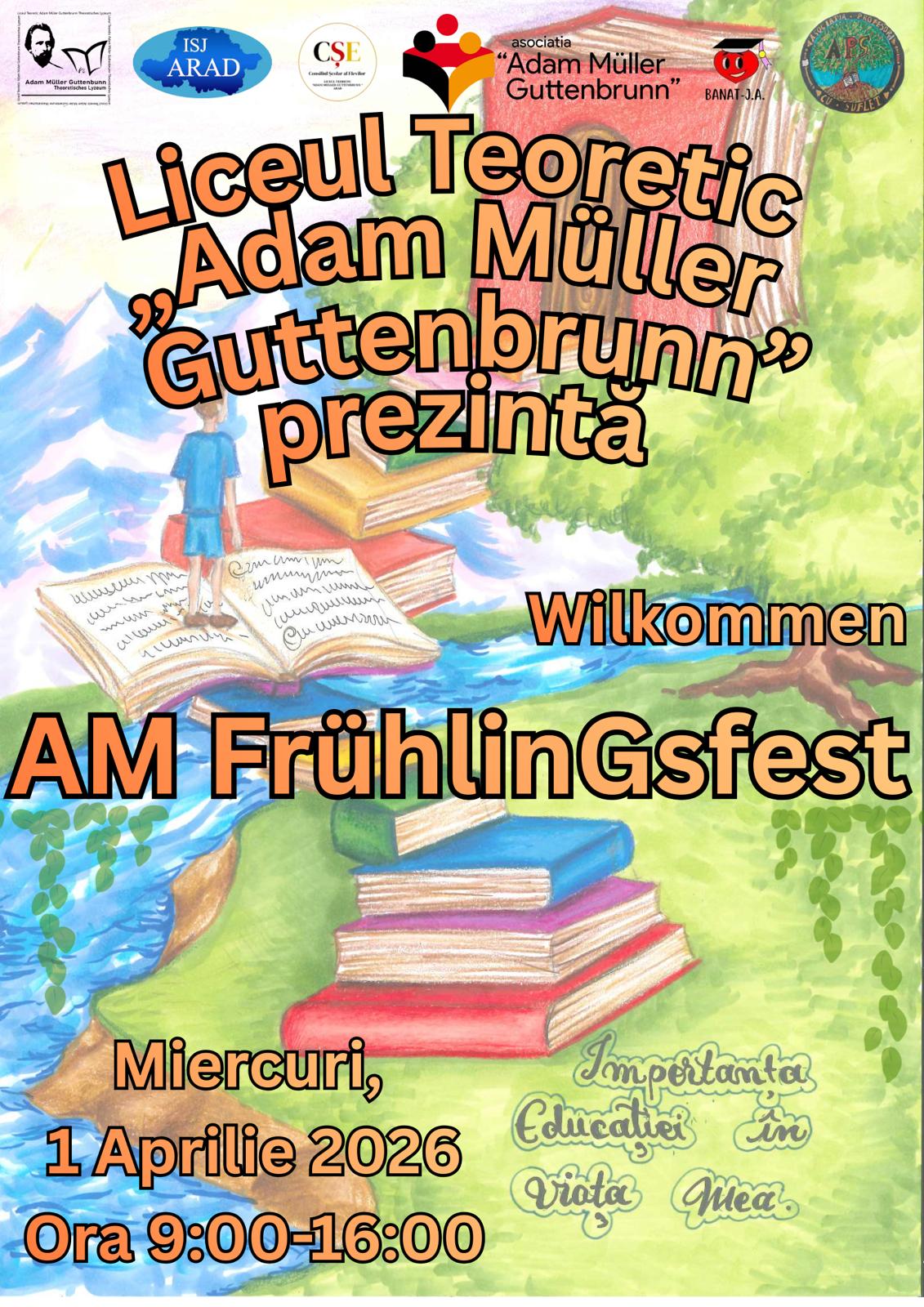 Liceul Teoretic „Adam Müller Guttenbrunn” Arad are deosebita plăcere de a vă invita să participați la evenimentul „FrühlingsFest 2026”, o manifestare dedicată celebrării primăverii, tradițiilor și diversității culturale.